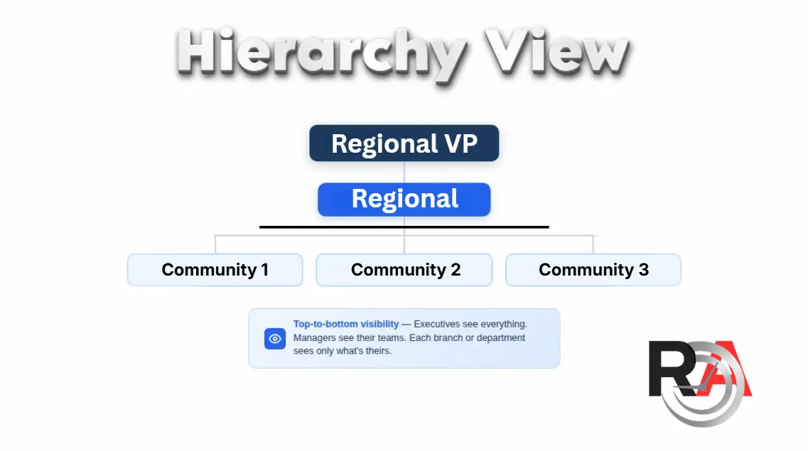 Regionals get a combined portfolio view or can drill down property by property. Everyone sees exactly what they need to see, nothing more.