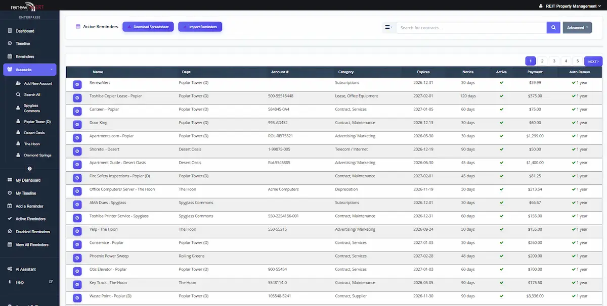 RenewAlert automates vendor contract tracking and compliance deadlines across every property so your team spends less time chasing renewals and more time running the portfolio.